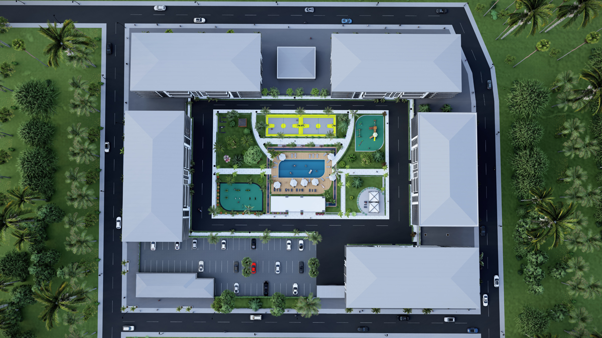 - 6050 m2’den oluşan Otopark(Her daireye 1 Otopark,10 adet yedek Otopark)